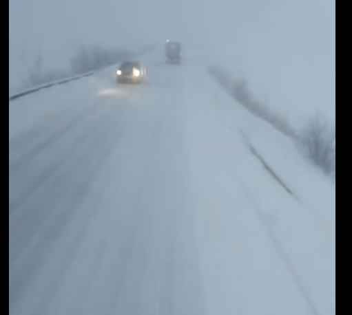 În zonă ninge abundent, iar vizibilitatea este extrem de scăzută.
