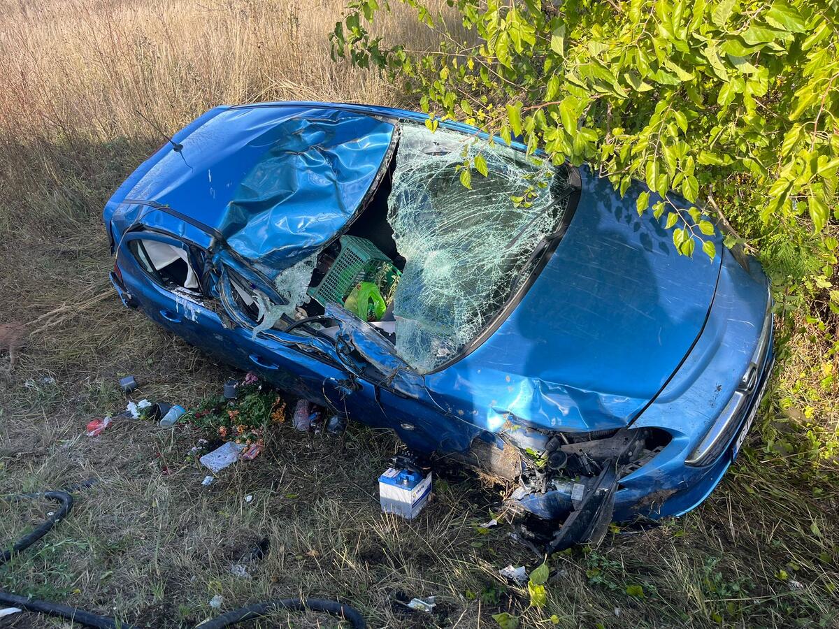 Accident pe DN 6: O femeie de 71 de ani s-a răsturnat cu mașina într-un șanț