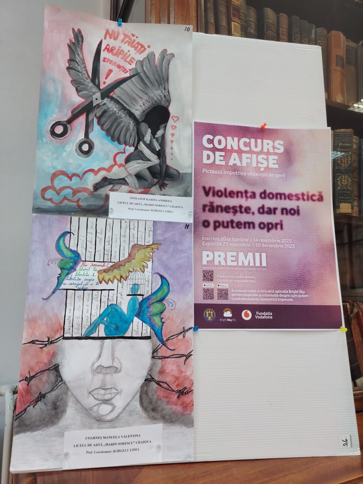 Lucrările vor putea fi văzute pe toată durata campaniei „16 zile de activism împotriva violenței asupra femeilor”, între 25 noiembrie și 10 decembrie, la sediul bibliotecii județene.