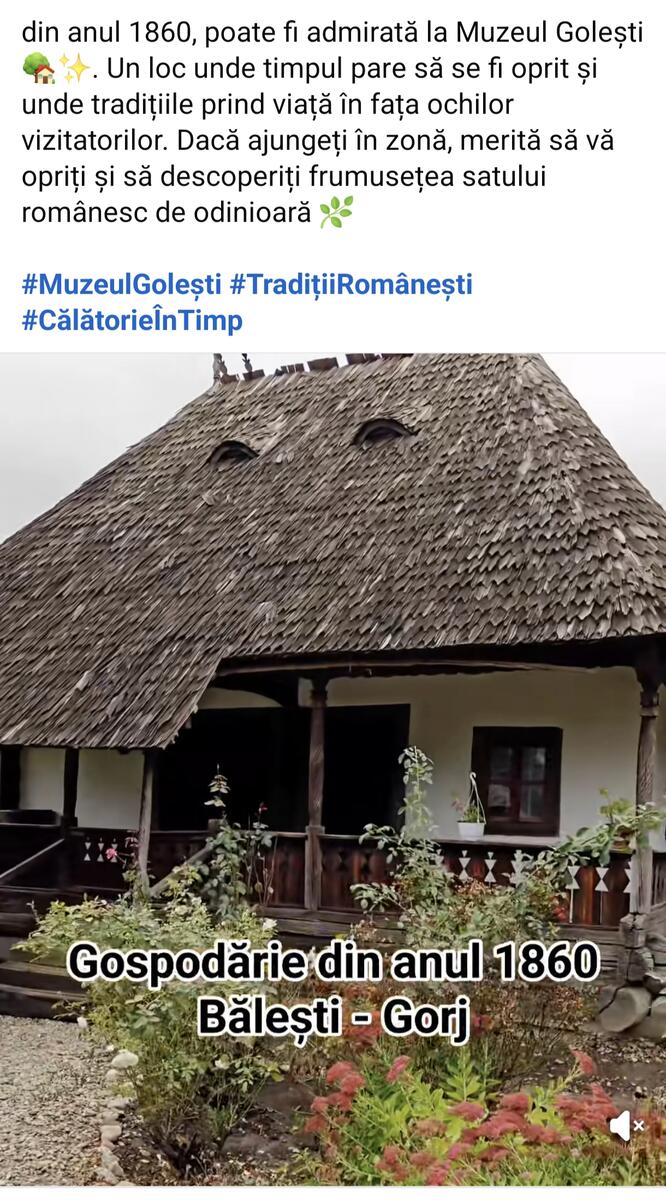 „O gospodărie autentică din județul Gorj, datând din anul 1860, poate fi admirată la Muzeul Golești din Argeș Un loc unde timpul pare să se fi oprit și unde tradițiile prind viață în fața ochilor vizitatorilor. Dacă ajungeți în zonă, merită să vă opriți și să descoperiți frumusețea satului românesc de odinioară”, a transmis Romeo Dinica pe pagina sa de socializare.