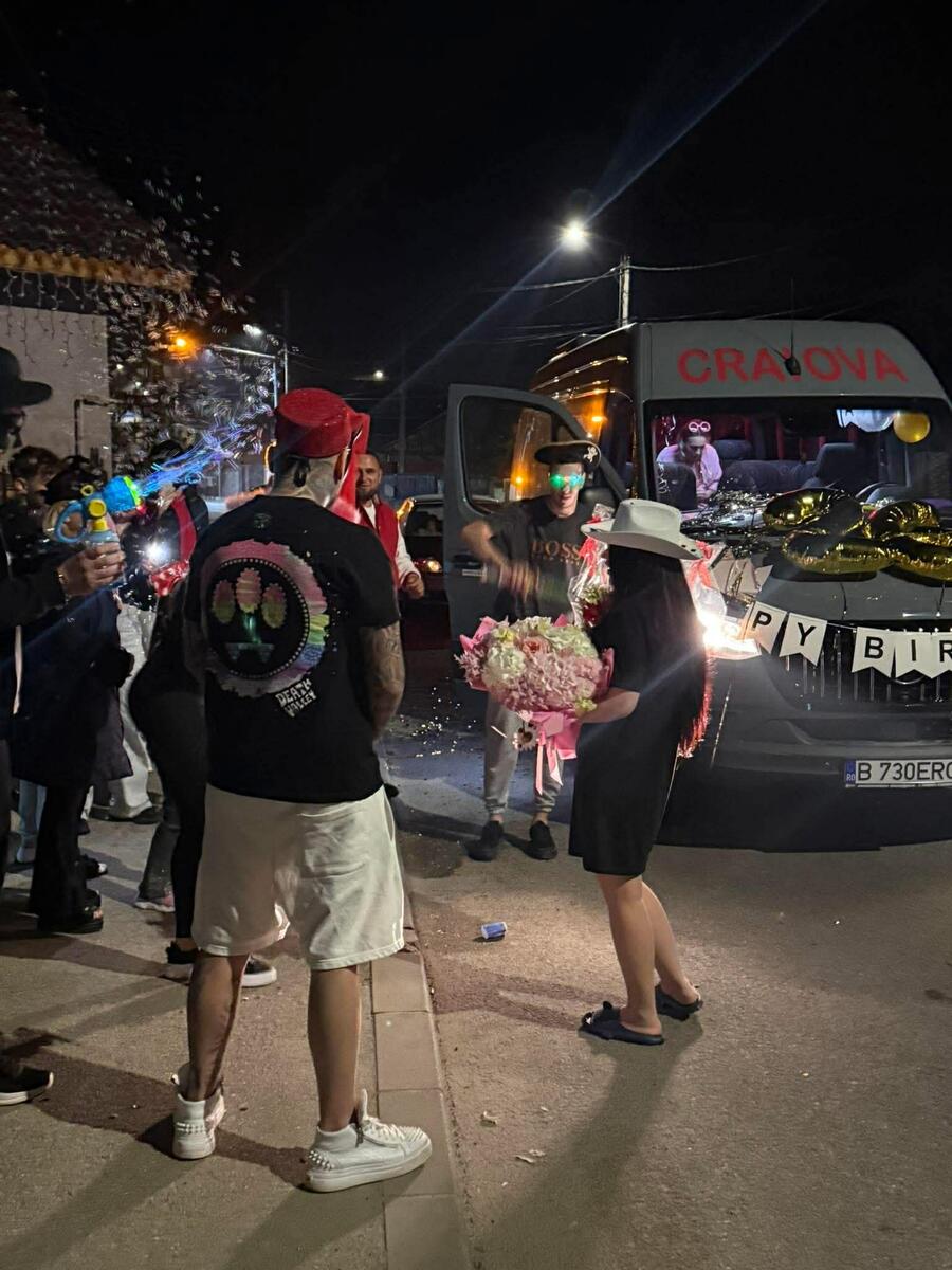 „Petrecerea a „colindat” orașul, cu opriri în mai multe puncte-cheie, inclusiv în zona centrală, în fața Primăria Târgu Jiu, dar și în apropiere de McDonald’s sau OMV. Atmosfera a fost una electrizantă, oameni de pe stradă au rămas uimiți, fiind atrași de muzică, energie și vibe-ul petrecerii. Oamenii au dansat alături de noi. A fost foarte frumos! Ieșit din convențional și mi-a plăcut. Am cei mai buni nași și prieteni”, a spus Mădălina Cotoi.