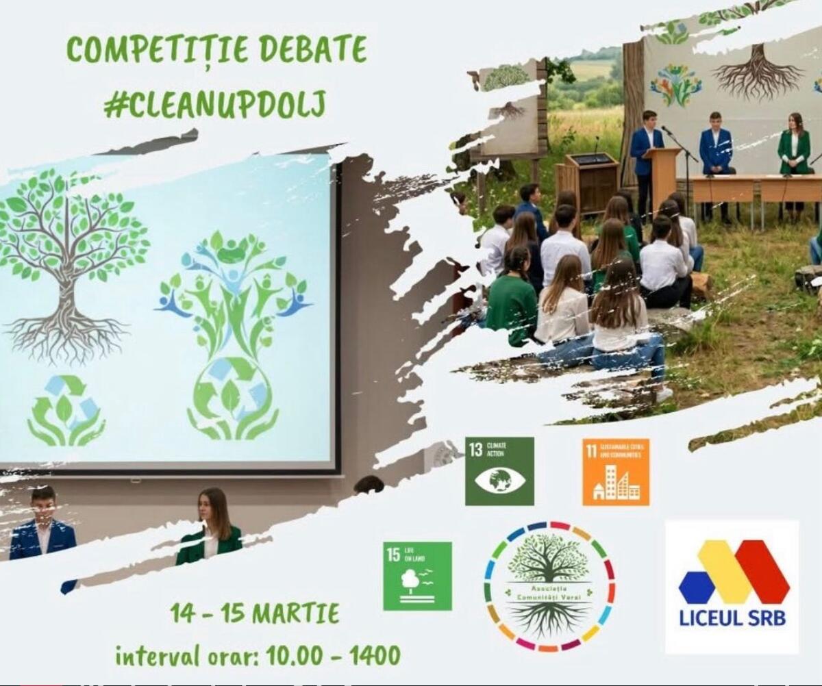 Asociația „Comunități Verzi” a organizat, în data de 14 martie 2026, începând cu ora 12:00, la Liceul SRB Craiova competiția de dezbateri „CleanUP Dolj”, un eveniment dedicat implicării tinerilor în discutarea problemelor de mediu și identificarea de soluții pentru comunitate.