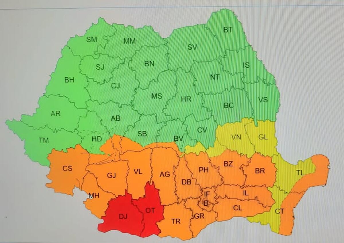 Administrația Națională de Meteorologie (ANM) a emis, joi, o avertizare cod roșu de ploi abundente pentru județele Dolj și Olt.