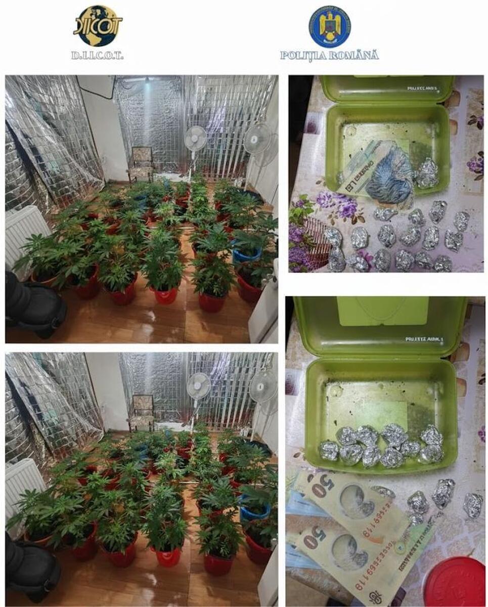 Cultură indoor de canabis, descoperită în Mehedinți. 34 de plante și droguri pregătite pentru vânzare