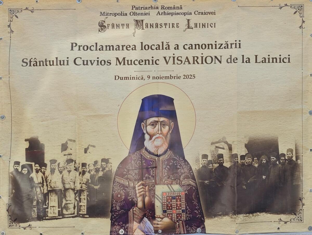 Cu binecuvântarea Înaltpreasfințitului Părinte Dr. Irineu, Arhiepiscopul Craiovei și Mitropolitul Olteniei, în perioada 8 – 9 noiembrie 2025, la Mănăstirea Lainici din județul Gorj, se vor desfășura festivitățile prilejuite de proclamarea locală a canonizării Sfântului Cuvios Mucenic Visarion de la Lainici. Manifestările liturgice se vor desfășura potrivit următorului program: