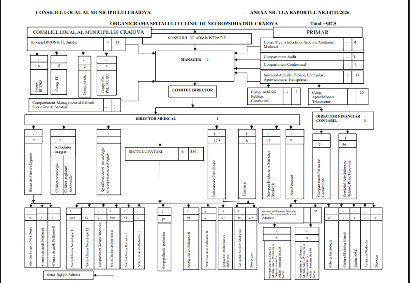 Alte posturi vacante sau ocupate au fost redistribuite între secțiile spitalului, inclusiv Psihiatrie Pediatrică, Psihiatrie Cronici Melinești, Camera de Gardă Neurologie, Terapie Intensivă și Secția Clinică Neurologie II.