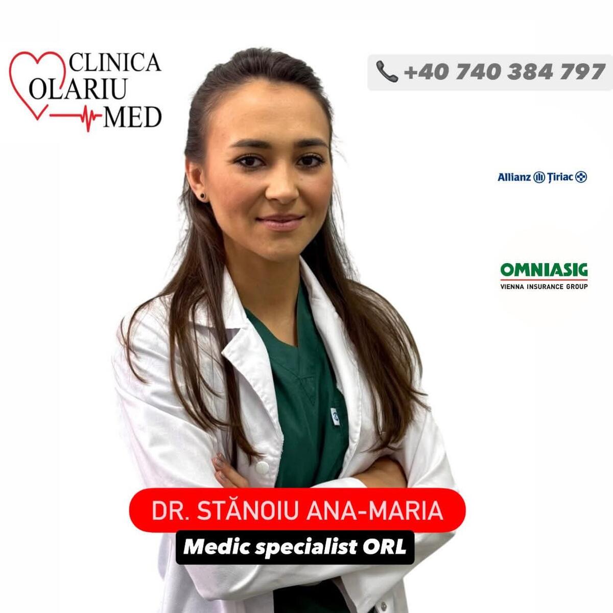 Dr. Ana Maria Stănoiu: Vocația pentru medicină a apărut încă din copilărie; am știut dintotdeauna că acesta este drumul pe care doresc să îl parcurg. Decizia de a urma cursurile Facultății de Medicină a venit din dorința de a ajuta oamenii și de a avea un impact real în viața lor prin grija față de sănătatea lor. Am absolvit Facultatea de Medicină Generală din cadrul Universității de Medicină și Farmacie “Victor Babeș” din Timișoara în anul 2020. Ulterior, începând cu anul 2021 mi-am început formarea ca medic rezident ORL în cadrul Clinicii de Otorinolaringologie și Chirurgie Cervico-Facială a Spitalului Municipal de Urgență Timișoara. Întregul parcurs al rezidențiatului s-a desfășurat sub coordonarea domnului Conf. Dr. Boia Eugen, care mi-a fost mentor și care a avut un impact decisiv asupra viziunii mele medicale. Sub îndrumarea dumnealui, am deprins nu doar rigoarea clinică, ci mai ales disciplina și finețea necesare efectuării actului chirurgical. Am avut privilegiul de a mă forma într-un colectiv de medici experimentați, a căror conduită profesională mi-a oferit repere solide încă de la începutul carierei. Aici am învățat că medicina de performanță este, înainte de toate, un efort de echipă, dublat de o dorință constantă de autodepășire. Din dorința de a aprofunda latura științifică a specialității, din anul 2023 sunt Student Doctorand în cadrul Disciplinei de ORL a aceleiași universități, sub îndrumarea doamnei Prof. Dr. Horhat Ioana Delia. Această etapă de cercetare completează activitatea mea practică, permițându-mi să explorez noi frontiere în tratamentul patologiilor ORL și să evoluez constant în beneficiul pacienților mei.