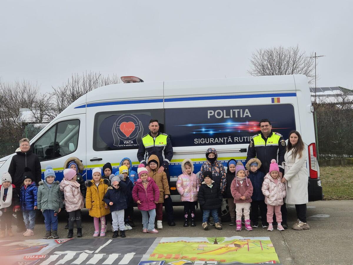 Activitatea face parte din programul de prevenire a accidentelor rutiere și subliniază rolul educației timpurii în formarea unor pietoni responsabili.