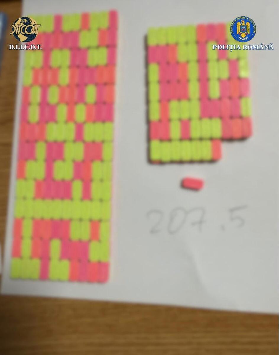 Polițiștii Brigăzii de Combatere a Criminalității Organizate Craiova, împreună cu procurorii D.I.I.C.O.T. – Serviciul Teritorial Craiova, au documentat activitatea infracțională a bărbatului, pe care l-au surprins în dimineața de 19 ianuarie 2026 în timp ce deținea și transporta aproximativ 80 de grame de cocaină, 994 de comprimate ecstasy, 500 de grame de 4-BMC și 1.500 de grame de N-ethylnorpentedrone, droguri de mare risc și substanțe psihoactive.