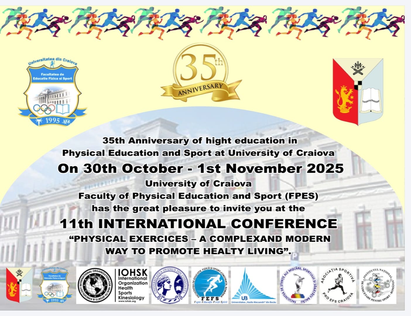 Craiova a fost, în perioada 30 octombrie-1 noiembrie 2025, gazda unuia dintre cele mai importante evenimente științifice din domeniul educației fizice și sportului și kinetoetrapiei, a XI-a Conferință Internațională „Physical Exercises-A Complex and Modern Way to Promote Healthy Living”, organizată de Facultatea de Educație Fizică și Sport din cadrul Universității din Craiova.