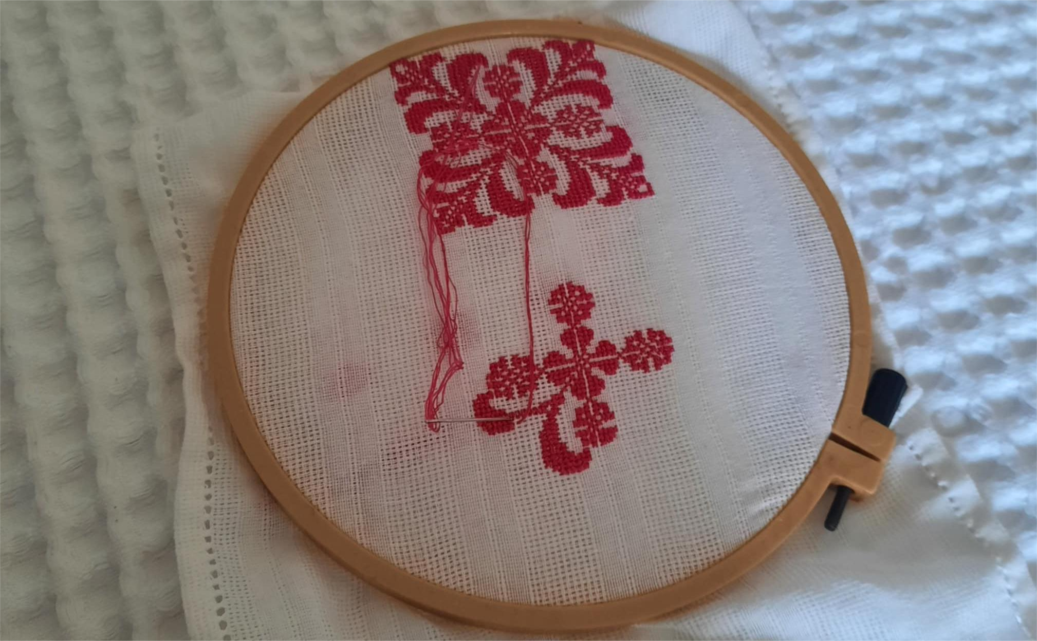 A.Ș.: Lucrez doar cu tehnici tradiționale, punctul de cusătură, musca/cruciulița, respectând tiparele specifice iei: altiță, încreț, râuri. Unicitatea iilor mele constă în varietatea și complexitatea modelului cusut. Nici o ie nu seamănă una cu alta, fiecare are amprenta mea. Simbolurile cusute nu sunt întâmplătoare- romburi, rozete, spirale, valul, zig-zag, stelele, crucea, biserica, pomul vieții, coarnele berbecului, vîrtelnița sau motive vegetale, ele sunt adevărate coduri vizuale cu sensuri profunde ce țin de protecție, fertilitate și armonie.