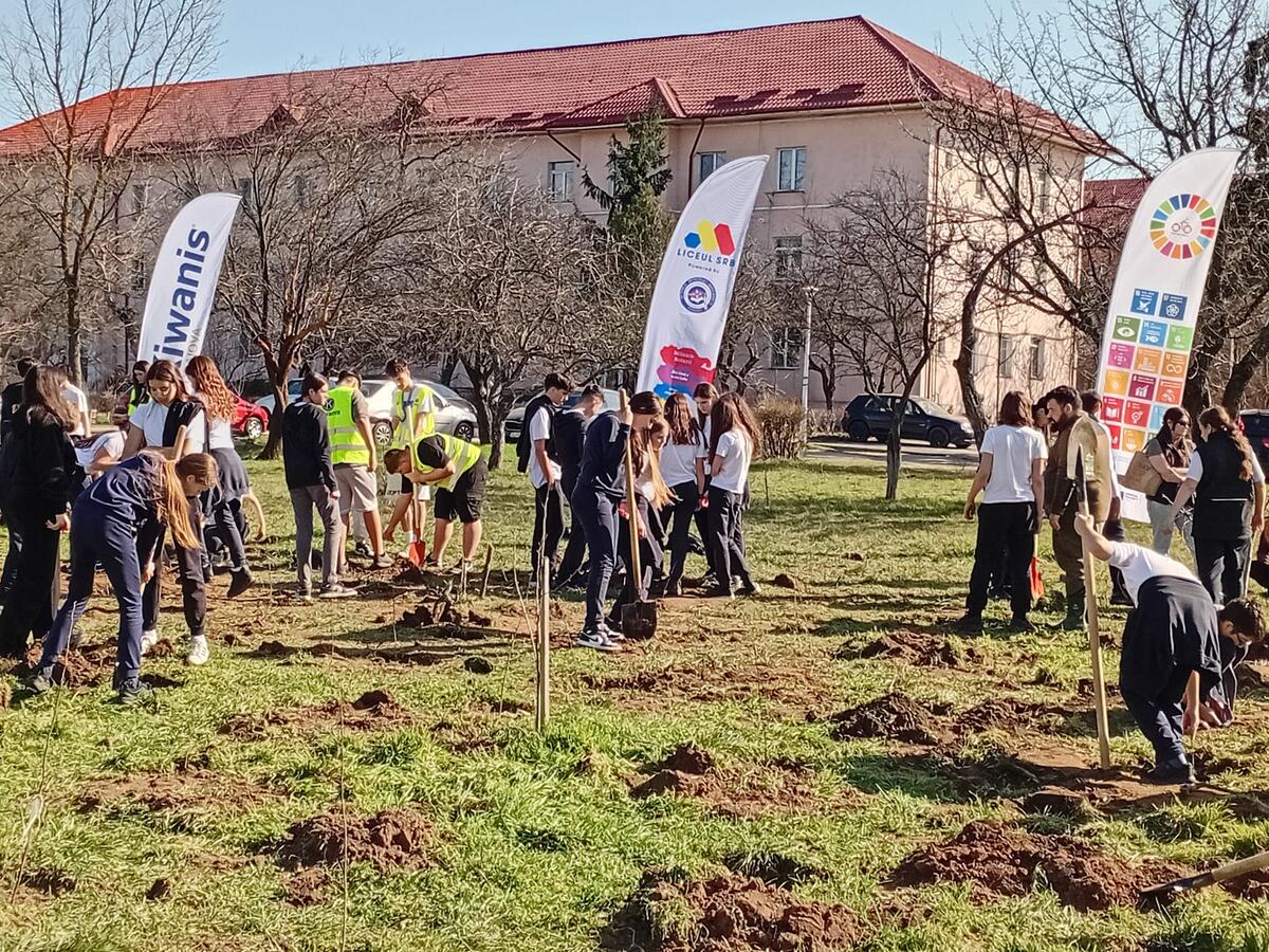 Kiwanis Craiova a mobilizat 400 de elevi pentru plantări în cartierul Aeroport