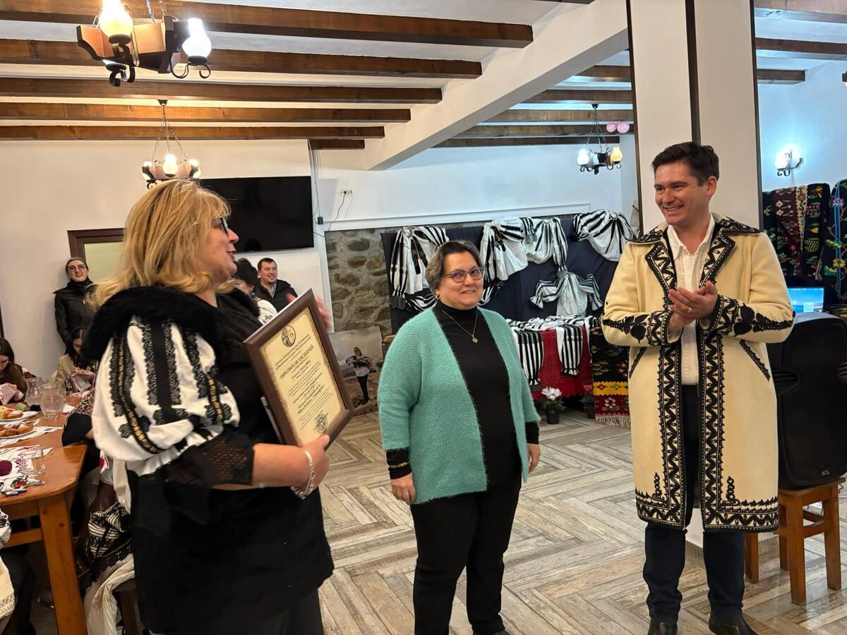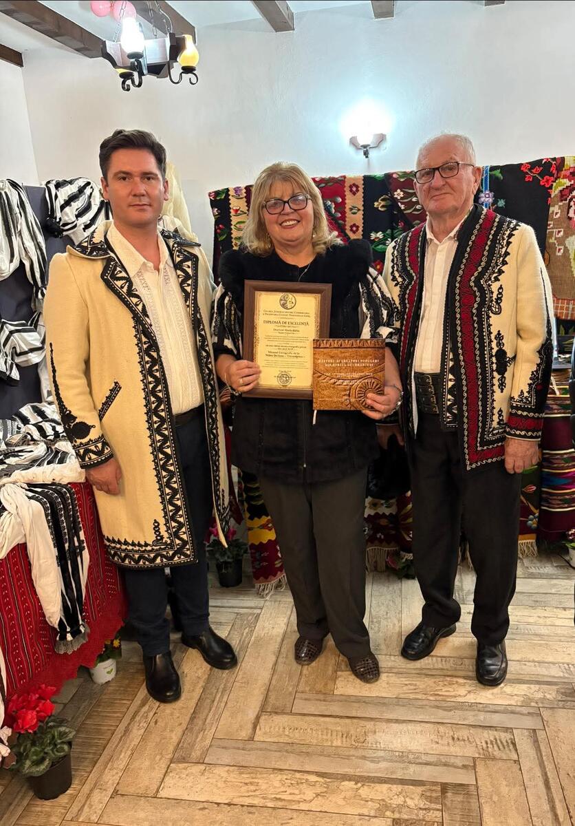 Mărioara Băbu, Tezaur Uman Viu, a primit astăzi diploma de excelență pentru „Cel mai vizitat muzeu etnografic privat din 2025”, distincție oferită de Ionuț Viorel Bordeiași, managerul Centrului Județean pentru Conservarea și Promovarea Culturii Tradiționale Gorj.