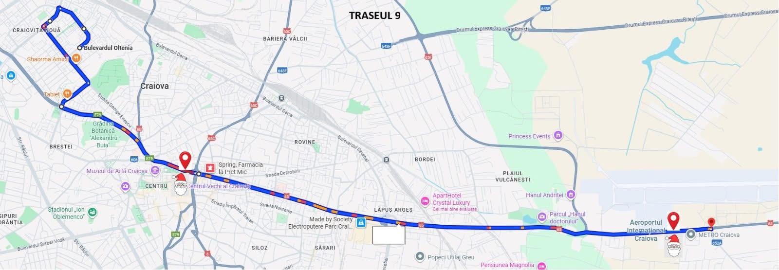 Transportul dintre parcarea de la aeroport și centrul orașului va fi asigurat de autobuzele de pe traseele 8 și 9.