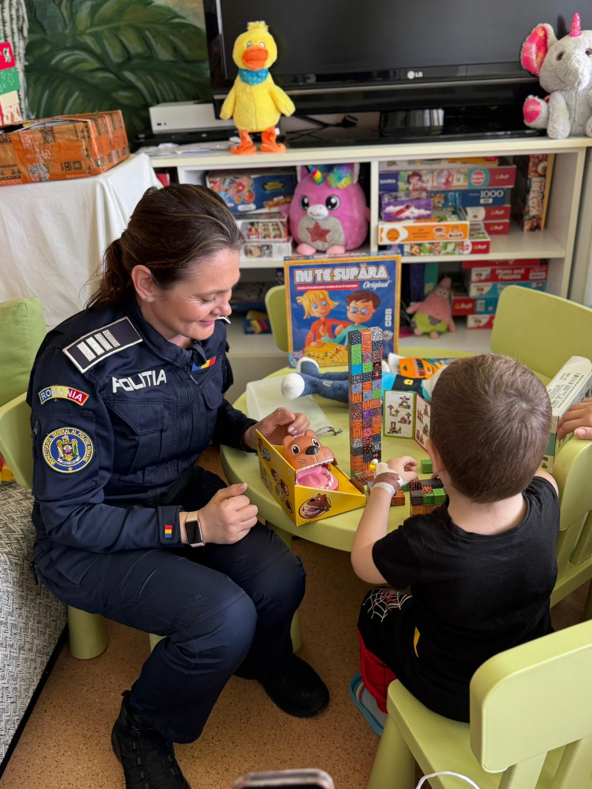 Potrivit purtătorului de cuvânt al IPJ Dolj, Andreea Mateescu, activitatea a inclus jocuri interactive și activități recreative, menite să le aducă celor mici o pauză de la rutina medicală și să le ridice moralul.