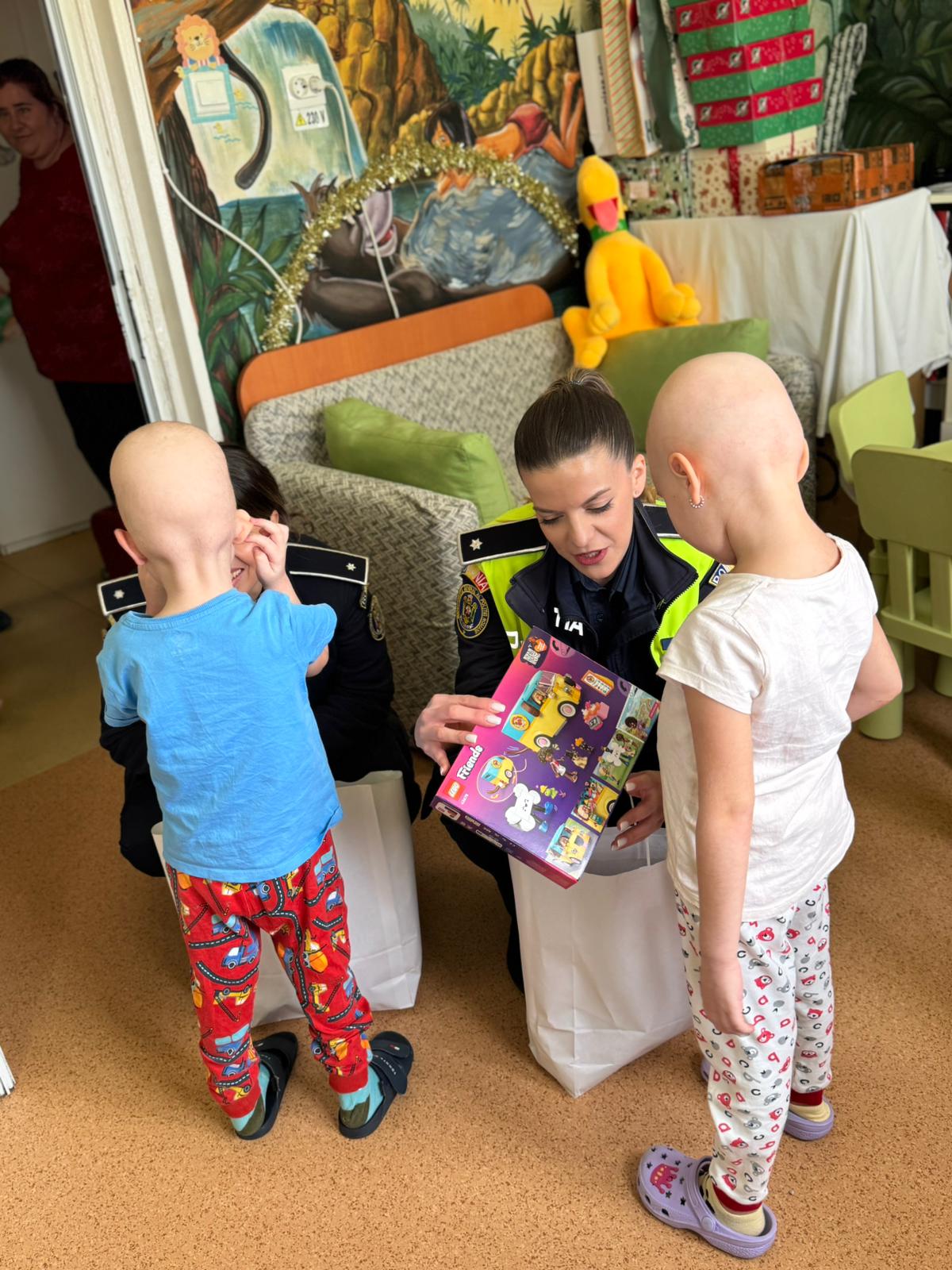 Polițiștii doljeni au desfășurat, astăzi, o acțiune cu caracter umanitar în Secția de Oncopediatrie, unde au petrecut timp alături de copiii internați, oferindu-le sprijin moral și momente de destindere.