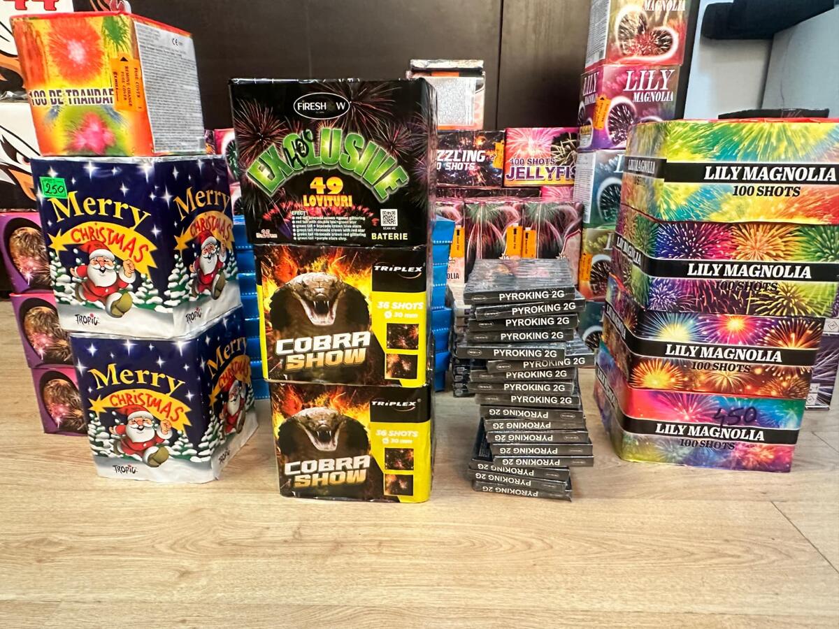 În urma constatărilor, au fost ridicate în vederea confiscării aproximativ 6.100 de articole, printre care baterii, petarde și alte produse pirotehnice din categorii interzise persoanelor fizice.