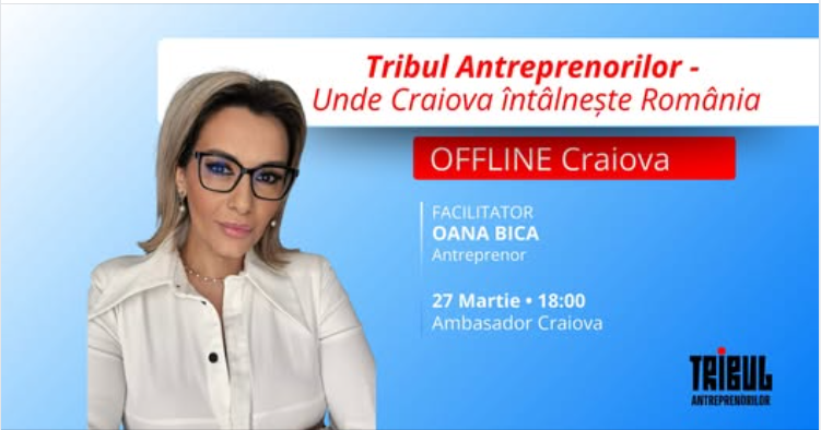 Comunitatea „Tribul Antreprenorilor” ajunge la Craiova, unde pe 27 martie antreprenori din mai multe domenii sunt invitați la o întâlnire dedicată conexiunilor reale din mediul de business. Evenimentul va avea loc la Restaurant Ambasador și își propune să aducă la aceeași masă oameni de afaceri interesați de colaborare, schimb de idei și proiecte comune. Despre cum a apărut inițiativa, ce își propune această ediție și ce tip de comunitate se construiește în jurul ei, aflăm mai multe de la Oana Bică, organizator și membru activ al comunității „Tribul Antreprenorilor”.
