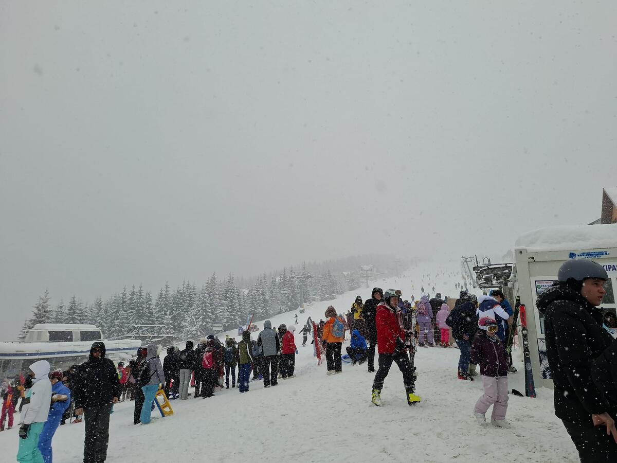Pe pârtie se coboară în ritm susținut. Începătorii sunt și ei prezenți, iar monitorii de schi lucrează continuu. O ședință de 50 de minute cu monitor costă între 170 și 200 de lei, iar cererea este constantă.
