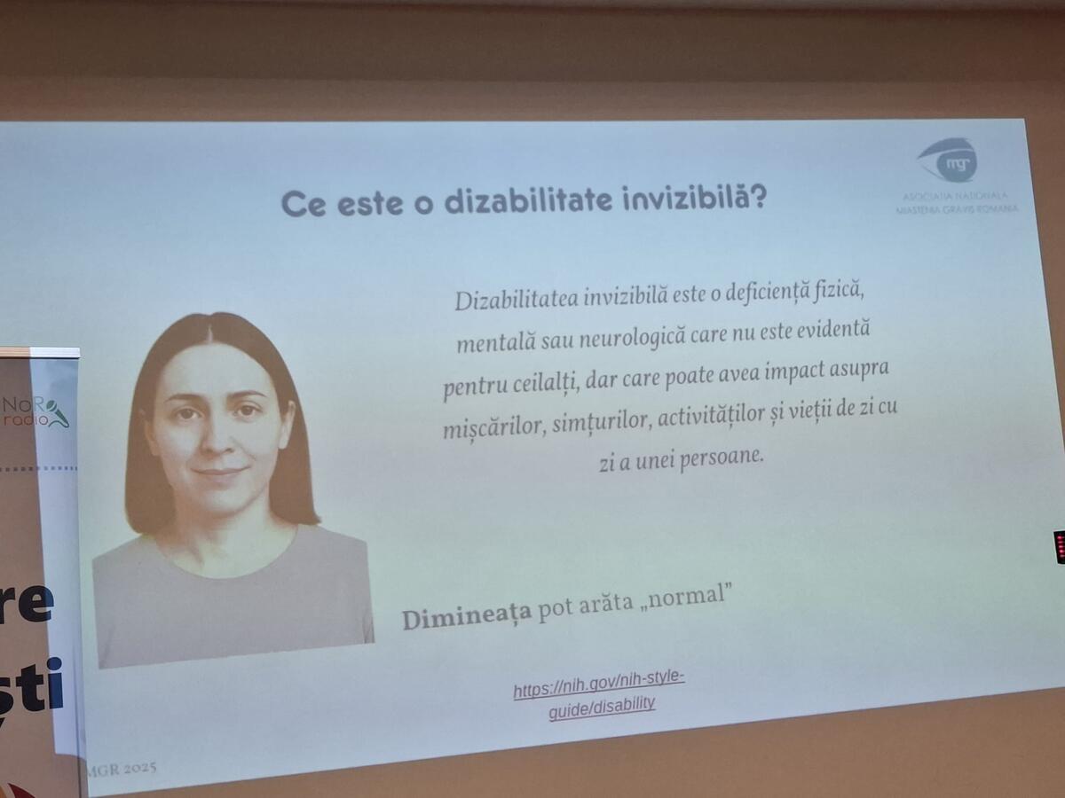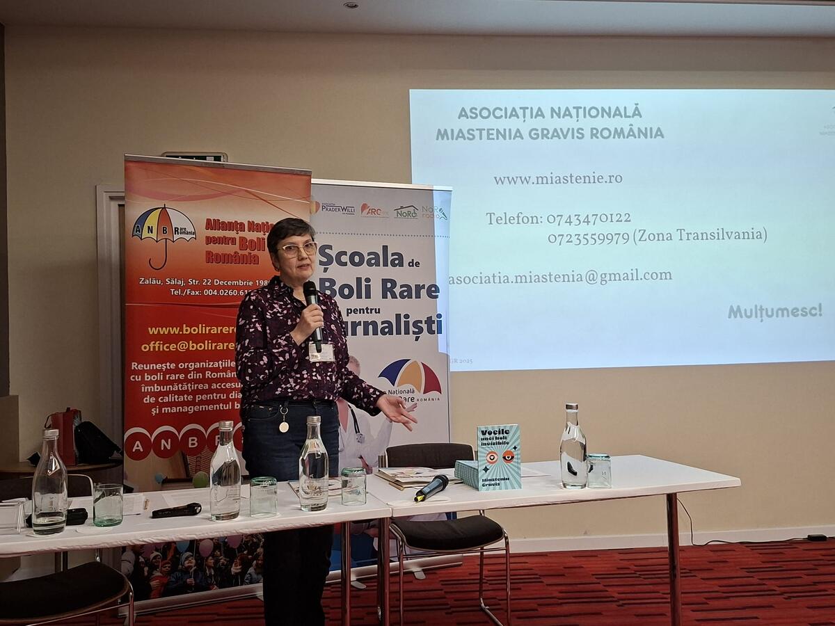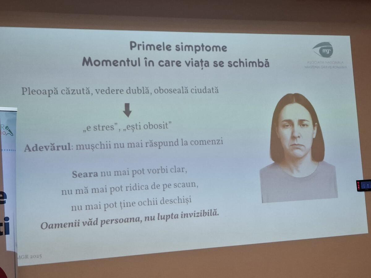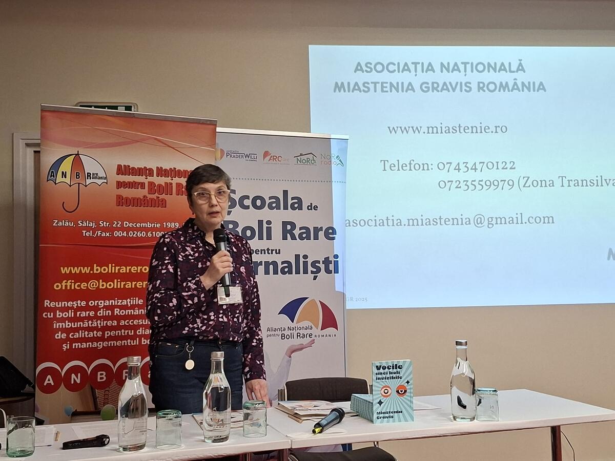 Miastenia gravis, o boală neuromusculară rară, afectează mii de români. Despre dificultățile cotidiene, impactul social și lupta cu o dizabilitate care rămâne adesea nevăzută, aflăm chiar de la vocea pacienților, Adriana Harja, președintele printr-un material realizat de Asociației Miastenia Gravis România, prezentă la ediția din acest an a Școlii de Boli Rare pentru Jurnaliști.
