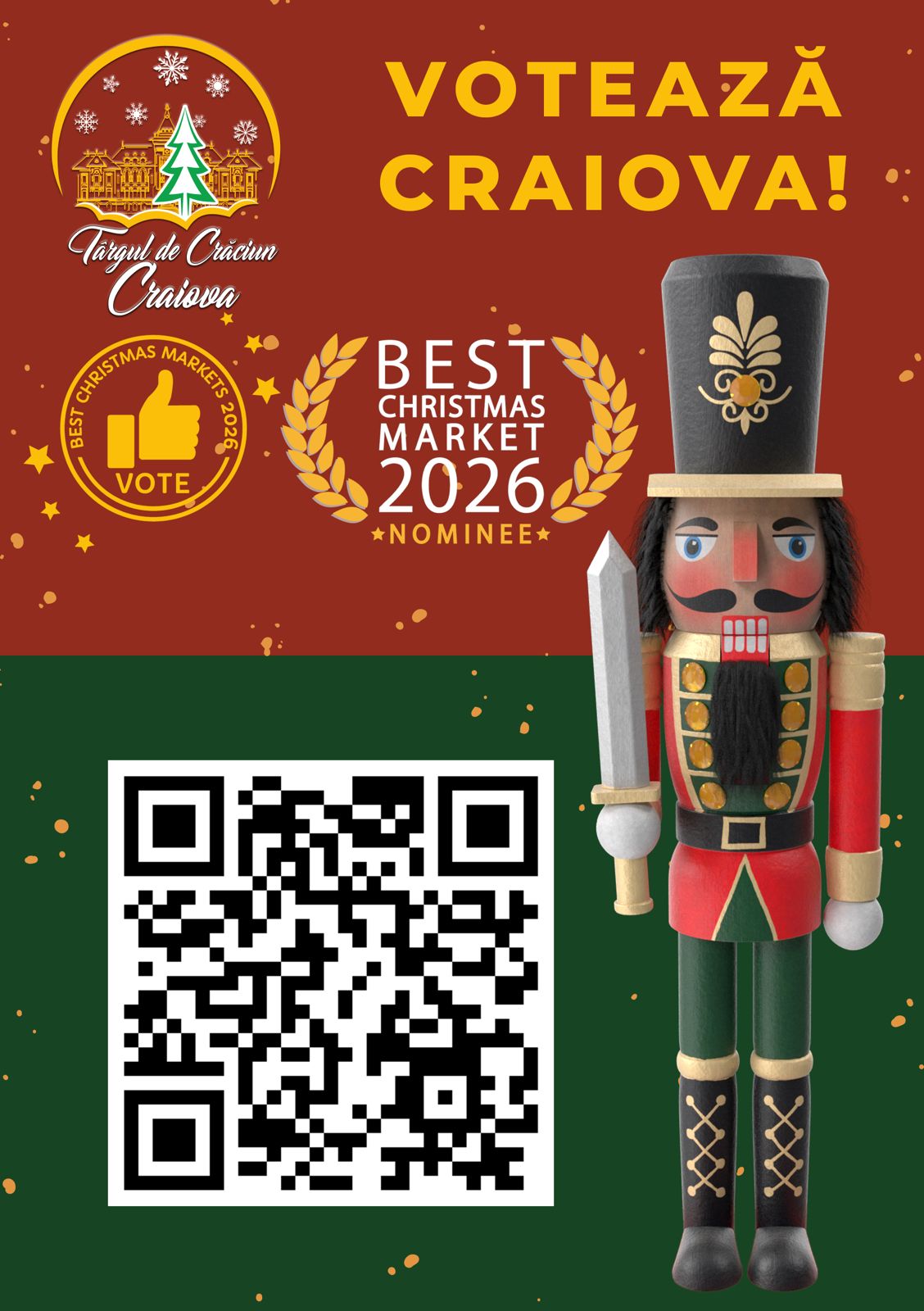 Craiova participă și în acest an în competiția European Best Christmas Markets 2026, organizată de European Best Destinations, platformă parteneră a Comisiei Europene. Concursul reunește destinații europene cunoscute pentru piețele și atmosfera lor de sărbători.