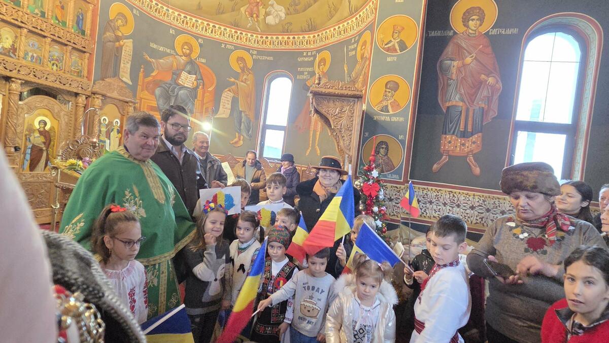 La final, preotul Tudor Matei a ținut un discurs profund și emoționant, în care le-a vorbit enoriașilor despre semnificația Zilei Naționale și despre importanța păstrării identității și valorilor românești. Mesajul său a fost primit cu respect și căldură de cei prezenți.